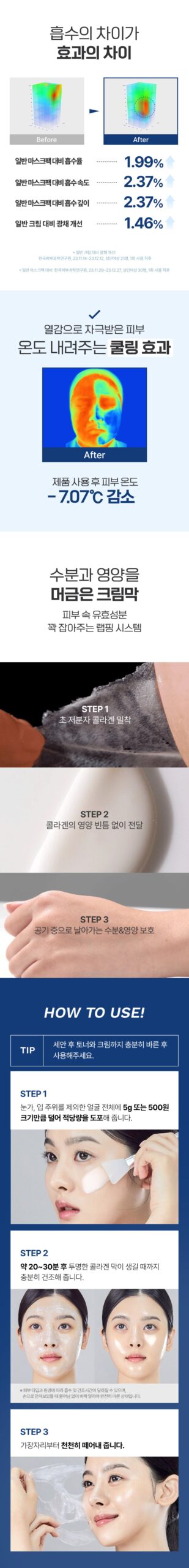 This mask sets itself apart by offering an astounding 144 hours of deep, penetrating moisturization, ensuring your skin remains hydrated from the inside out. It boasts superior performance with 1.99% absorption, 2.37% faster absorption speed, 2.37% deeper absorption, and a 1.46% increase in skin glow when compared to standard mask packs and creams. Experience a refreshing cooling sensation that effectively reduces skin temperature, thanks to a unique wrapping system designed to lock in active ingredients for maximum efficacy.