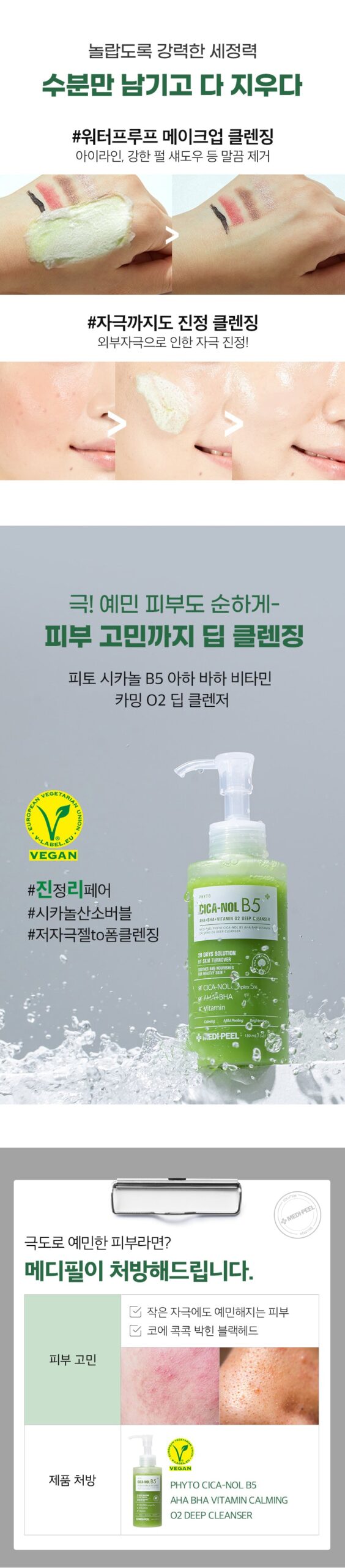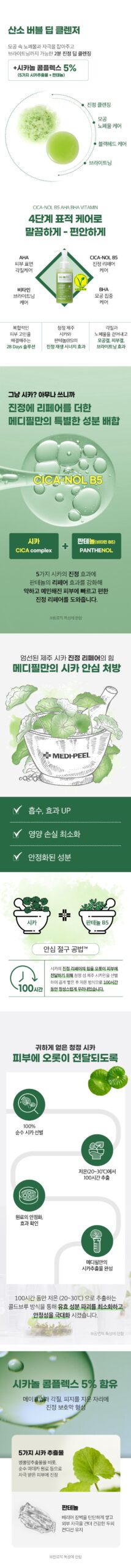 -MEDIPEEL’s Cicanol complex containing Jeju’s bottle grass cica, which is a herb helps to build a soothing barrier as you cleanse your face.