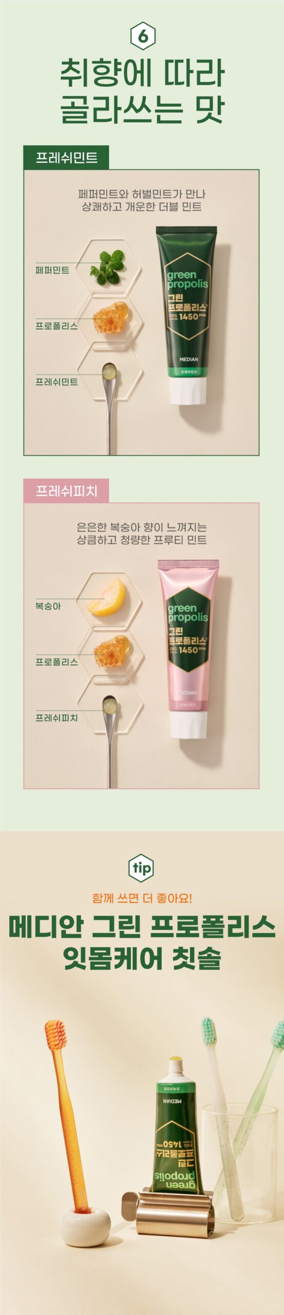 Median Green Propolis Toothpaste Fresh Peach 100g × 3ea