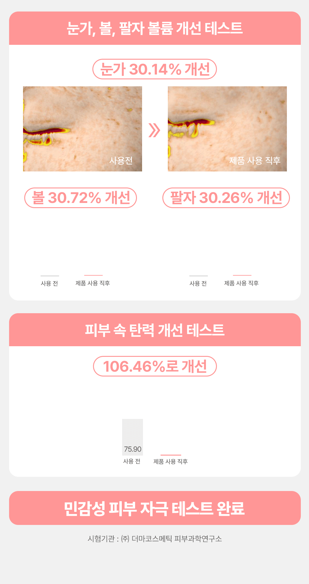 Proof of elasticity improvement effect Eye area, cheek, nasolabial fold volume improvement test