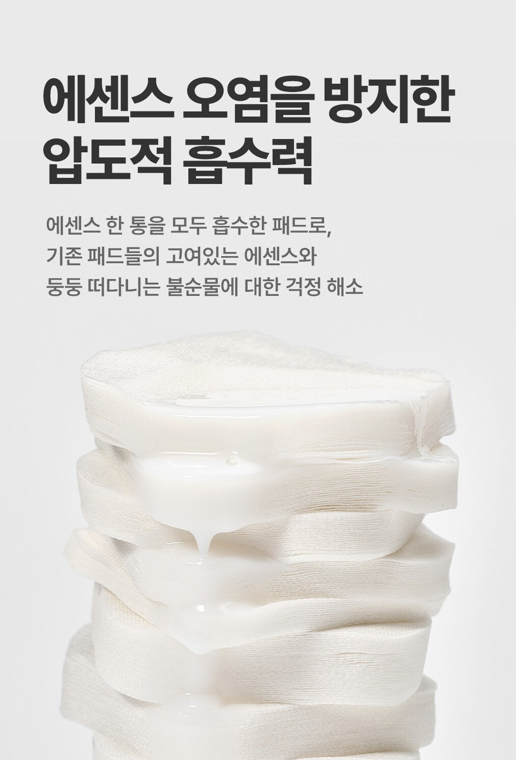 A pad that absorbs an entire bottle of essence, eliminating concerns about remaining essence and floating impurities from existing pads