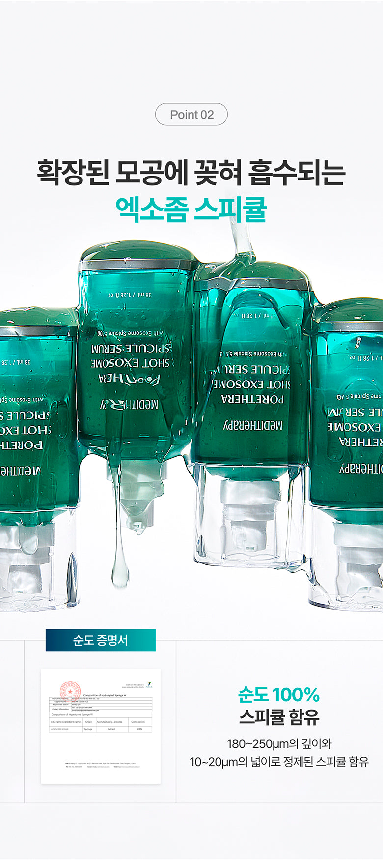 This formulation features high-purity exosome-coated spicules, which are small enough to penetrate pores deeply, enhancing their tightening and refining capabilities.