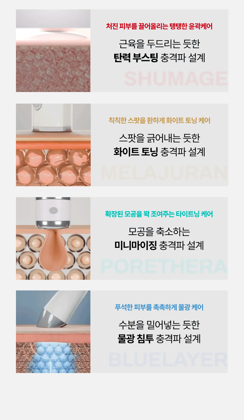 - Blue EMS Shot Mode: Penetrates deep into pores, delivering a tightening effect using advanced microcurrent technology.