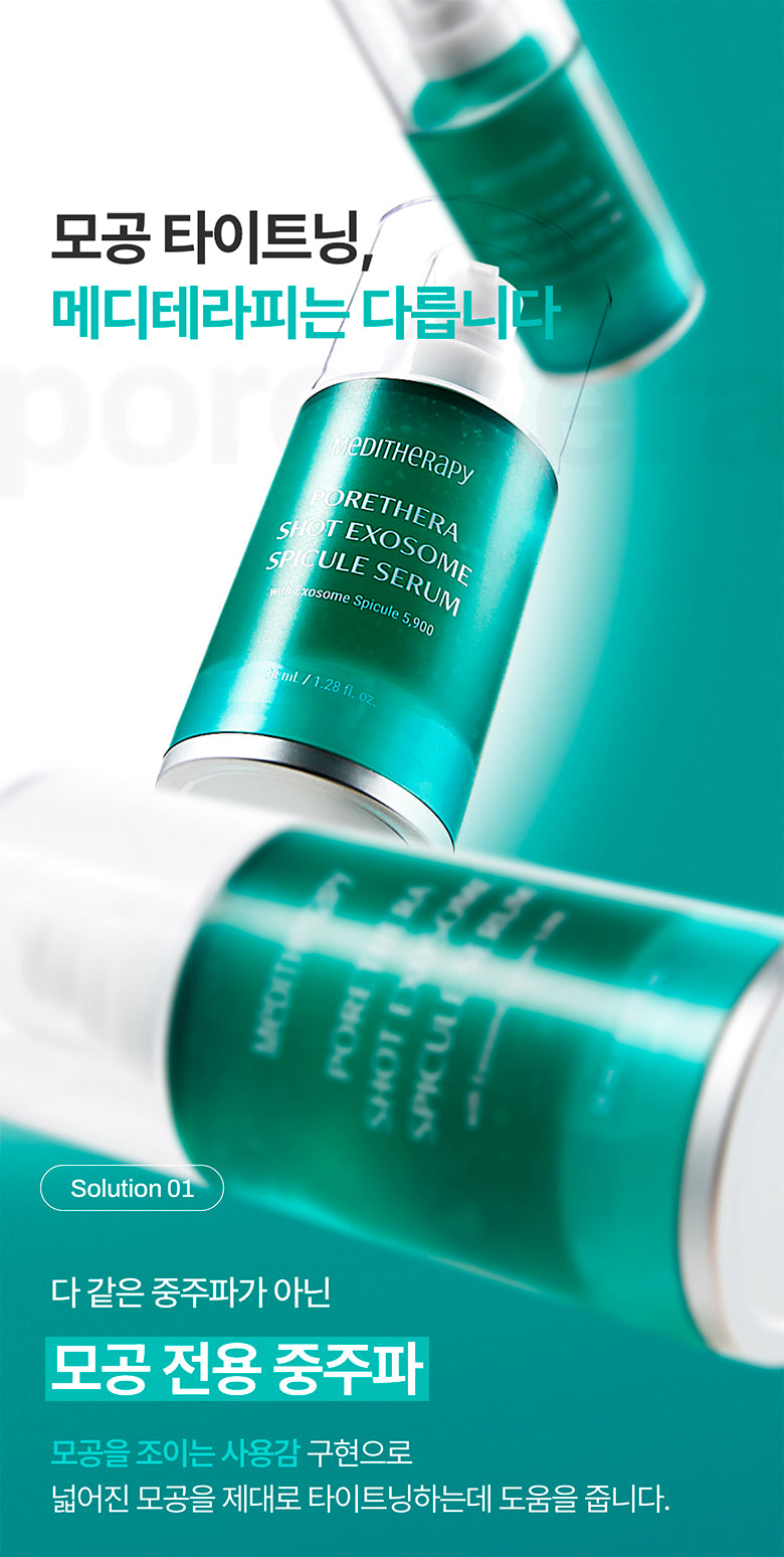 Elevate your daily skincare routine with Meditherapy Porethera Shot Exosome Spicule Serum for visibly reduced pores and smoother, tighter skin. Suitable for all skin types, this serum offers effective pore care with clinically proven results.