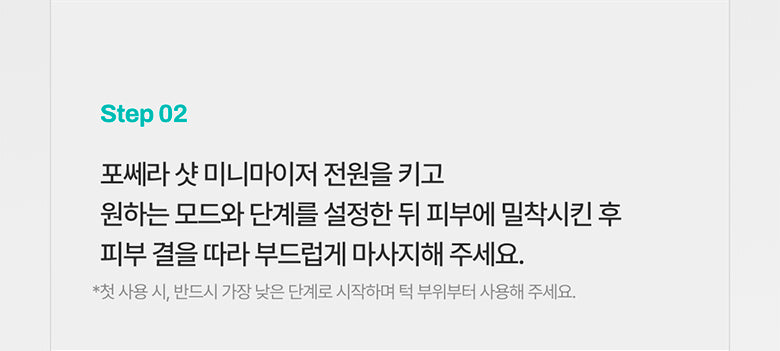 - Step 2: Turn on the Porethera Shot Minimizer, select your desired mode and intensity, and gently massage your skin along its natural contours. Start with the lowest setting for the first use, focusing on the jawline area.