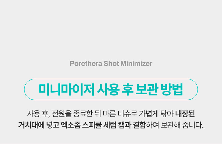 - After use, turn off the device, wipe clean with a dry tissue, and store using the integrated stand, keeping the serum cap secure.