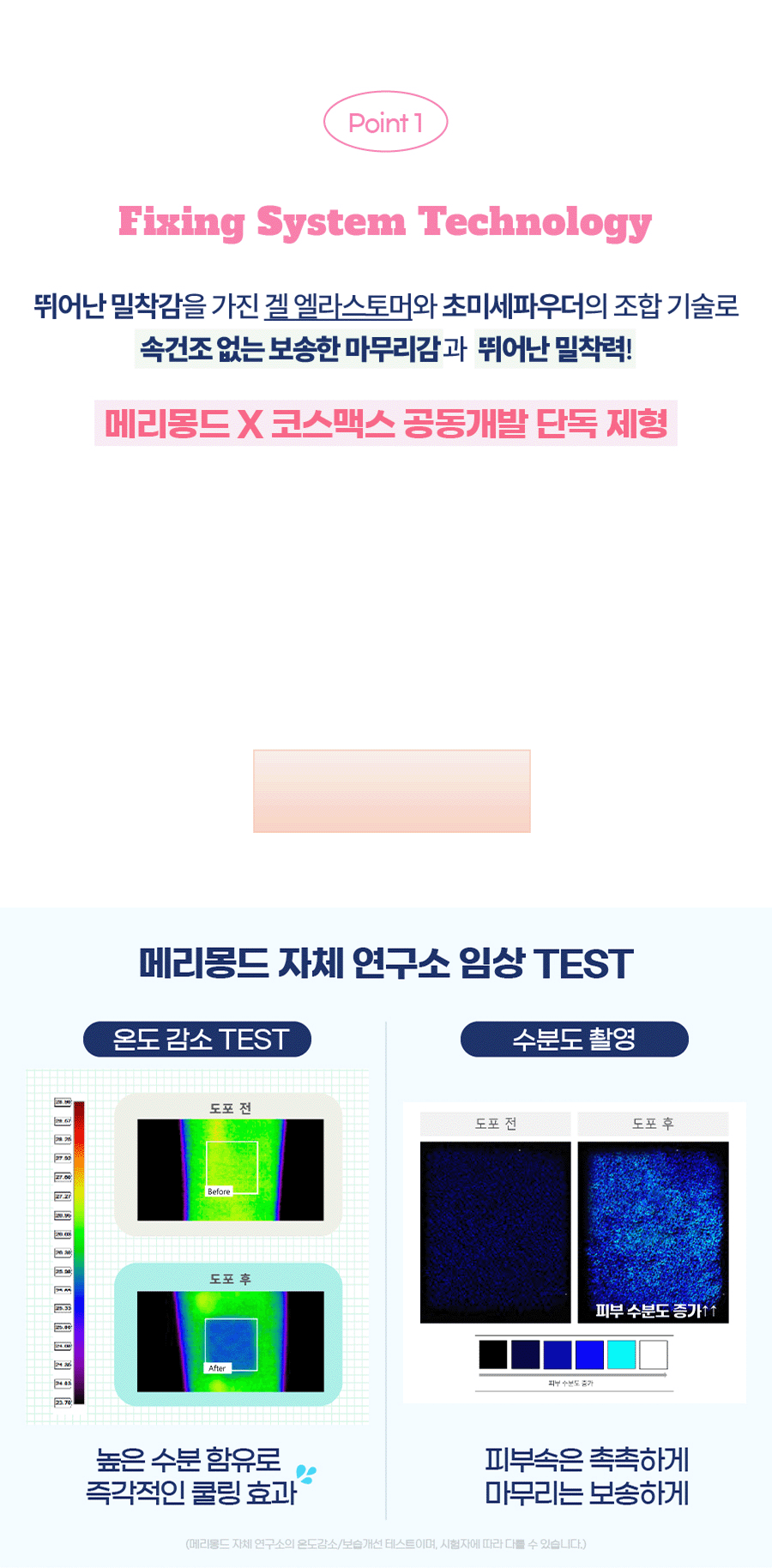 The advanced Fixing System combines gel elastomer for excellent adhesion and ultrafine powder for a soft, fluffy finish. This technology ensures long-lasting makeup that resists darkening and smudging, with an instant cooling effect due to high moisture content.
