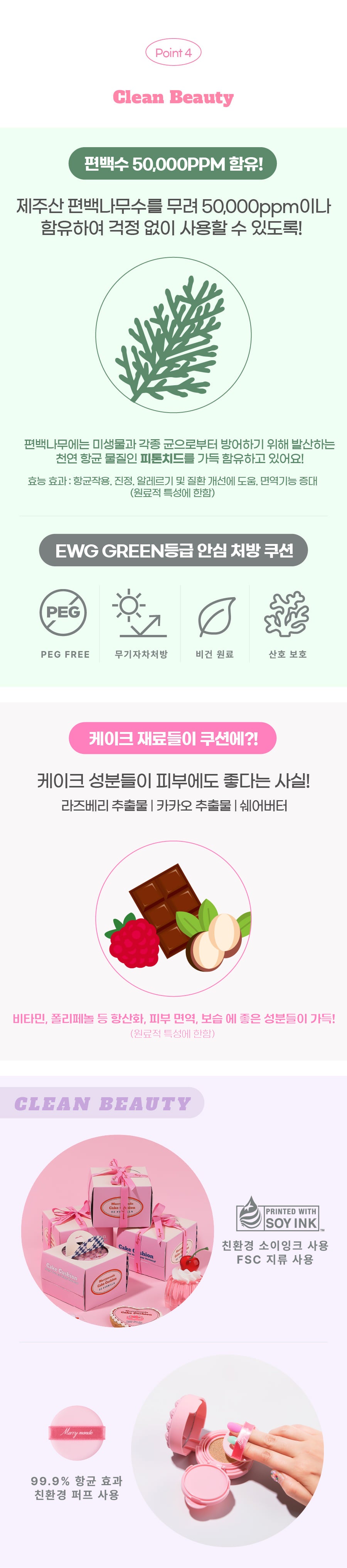Infused with 50,000 ppm of cypress water and vegan ingredients, this cushion is designed for sensitive skin. It offers an antibacterial effect, soothes irritation, and helps improve skin conditions. With its EWG GREEN-grade formula, it is free from harmful chemicals like PEG, and it uses a physical sunblock formula to protect your skin.