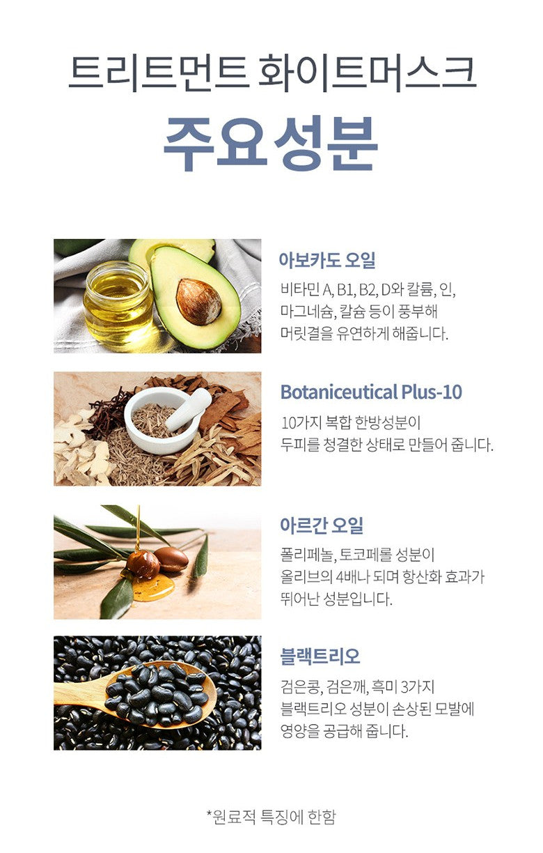 Black soybean, black sesame, and black rice three black trio ingredients provide nutrition to damaged hair.