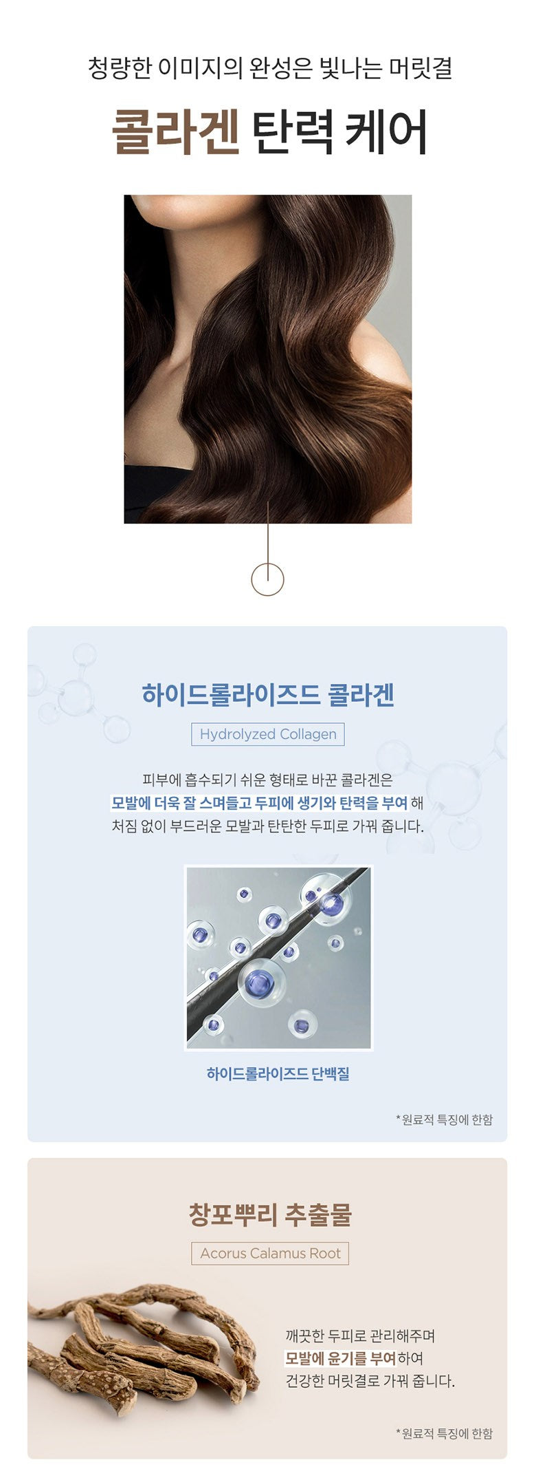 Hydrolyzed collagen penetrates deep into the hair to improve scalp elasticity and strength. It promotes soft, nourished hair and a firm, revitalized scalp. - Clary Root Extract