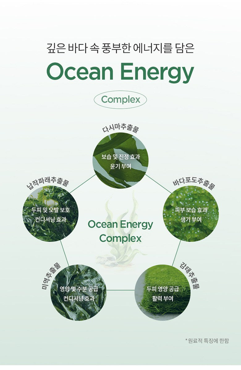 Sourced from over 200 meters below the ocean surface, this ionized water is packed with essential minerals and nutrients. It promotes moisture retention and ensures your scalp and hair stay healthy and hydrated. - Ocean Energy Complex