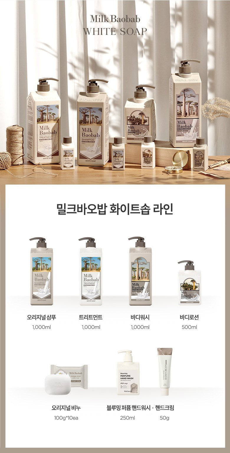 This deeply moisturizing conditioner is infused with milk protein and baobab seed extract to revitalize split ends and frizzy hair, resulting in smooth, shiny, and well-nourished strands. - Body Wash White Soap 70ml