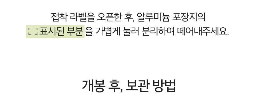 - First-Time Use: Carefully open by pressing the dotted area on the aluminum packaging.