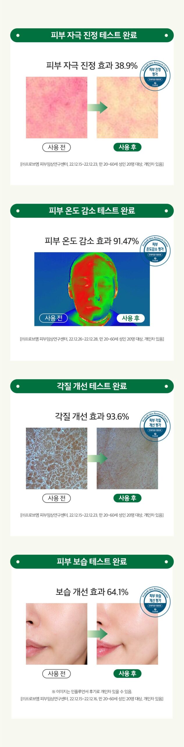 - Strong Soothing: Hedera Helix Extract and Glacier Water reduce skin temperature by 91.47% and soothe by 38.9%.