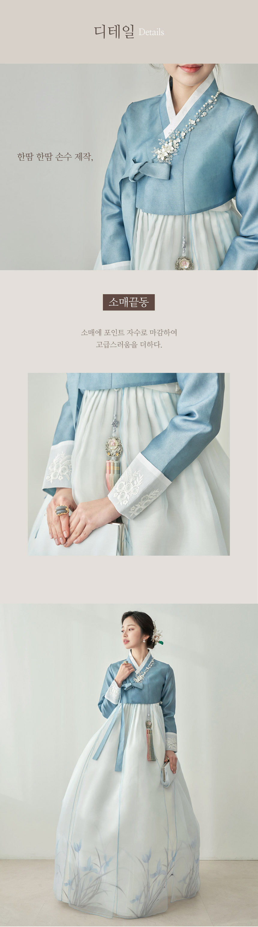 The cuffs are adorned with detailed embroidery, enhancing the luxurious aesthetic. - Traditional Ggae-kki Stitching