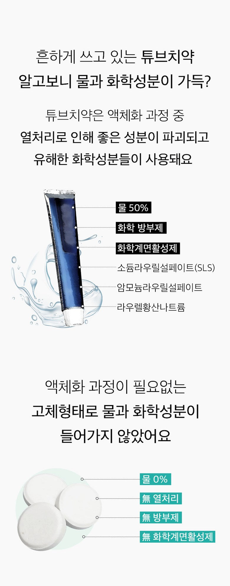 Traditional tube toothpastes can contain up to 50% water and harsh chemicals such as: