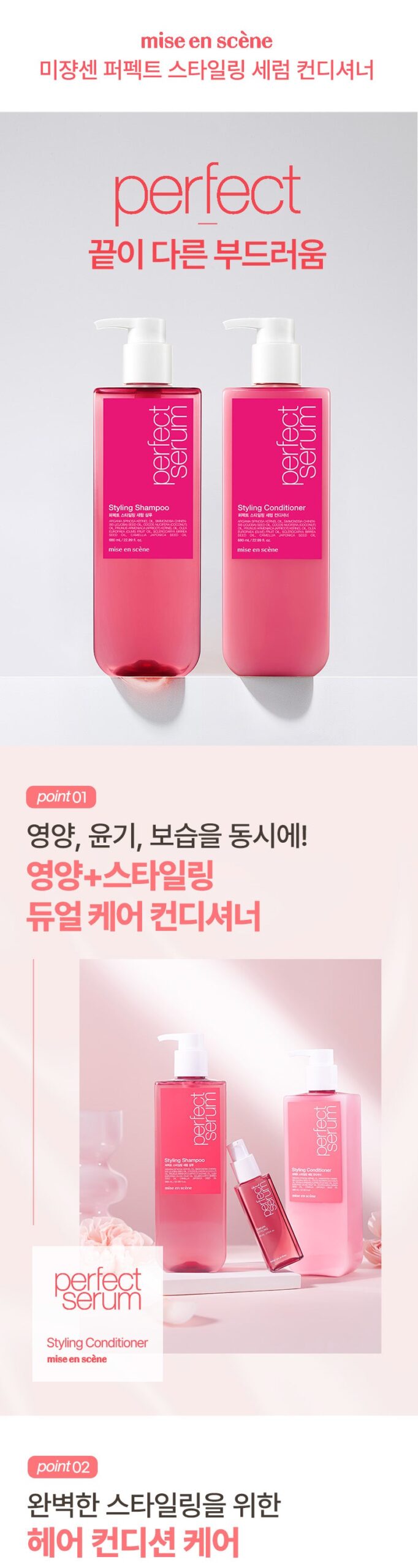 Revitalize your hair with Mise En Scène Perfect Serum Styling Conditioner and enjoy soft, manageable, and beautifully fragrant hair every day!