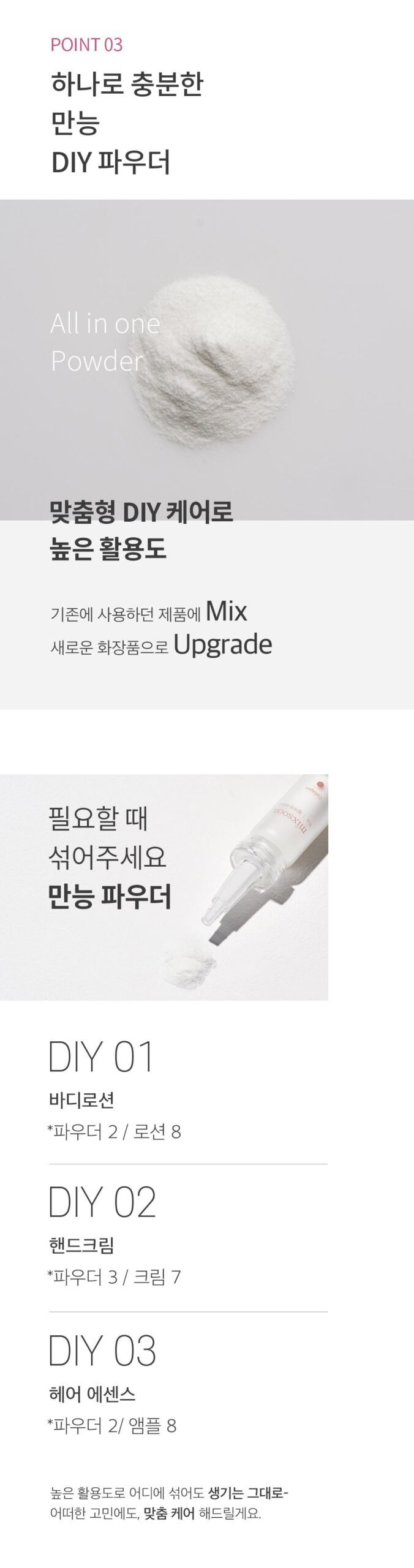 - While the powder mixes best with lighter products like toners or serums, it’s less suited for thicker essences or creams.
