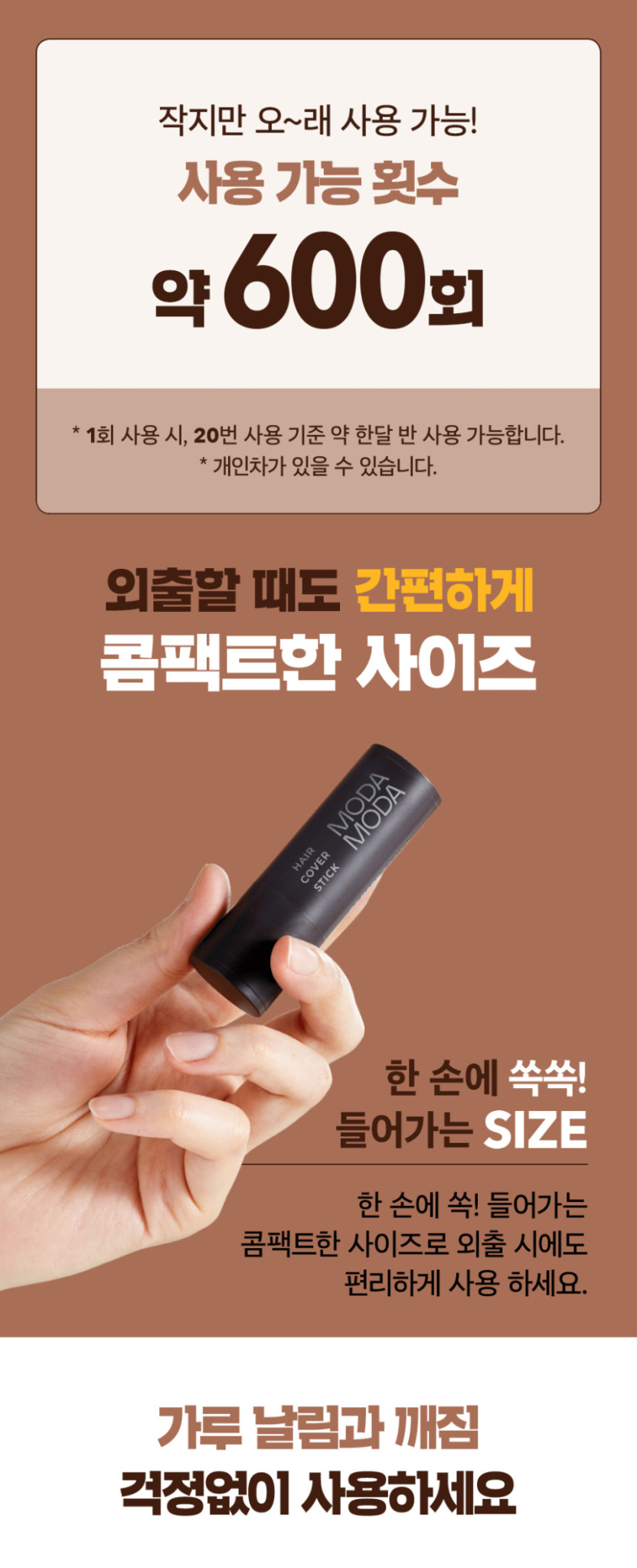 - This product is a hair cover stick that adheres well to the hair and lasts long on hot or rainy days.