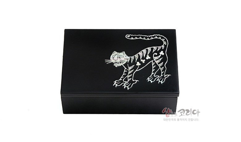 Nestled within the heart of traditional craftsmanship, this business card holder transforms functionality into a narrative of elegance. Crafted from bone and meticulously adorned with mother-of-pearl patterns, it embodies a dance between heritage and modern minimalism. The depiction of the anthropomorphic tiger springs forth from Korean folk tales—a representation not just an ornament but also symbolic bravery woven into everyday life. The matte finish on wood provides warmth that draws you in while remaining unassuming against other décor items; such balance fosters creativity during networking moments—no wonder I felt more confident when offering my card at recent meetings! This unique piece narrates my values without words.