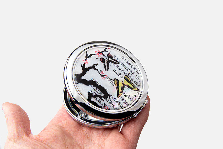 I just got my hands on this Mother-of-pearl hand mirror, and wow! The design with those butterflies around the plum tree is absolutely stunning. It’s like carrying a little piece of art in your bag! Honestly, I’ve never seen anything quite like it—the way it catches the light can change from soft blue to reddish hues depending on where I’m standing. It’s lightweight too—super convenient for travel or just popping into my handbag. Each time I look at myself in that mirror, I feel fancy even if I’m just out running errands. Such a lovely touch of Korean craftsmanship! This gem is definitely worth every penny.