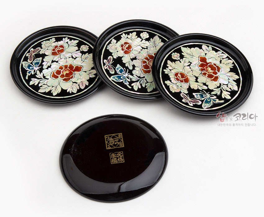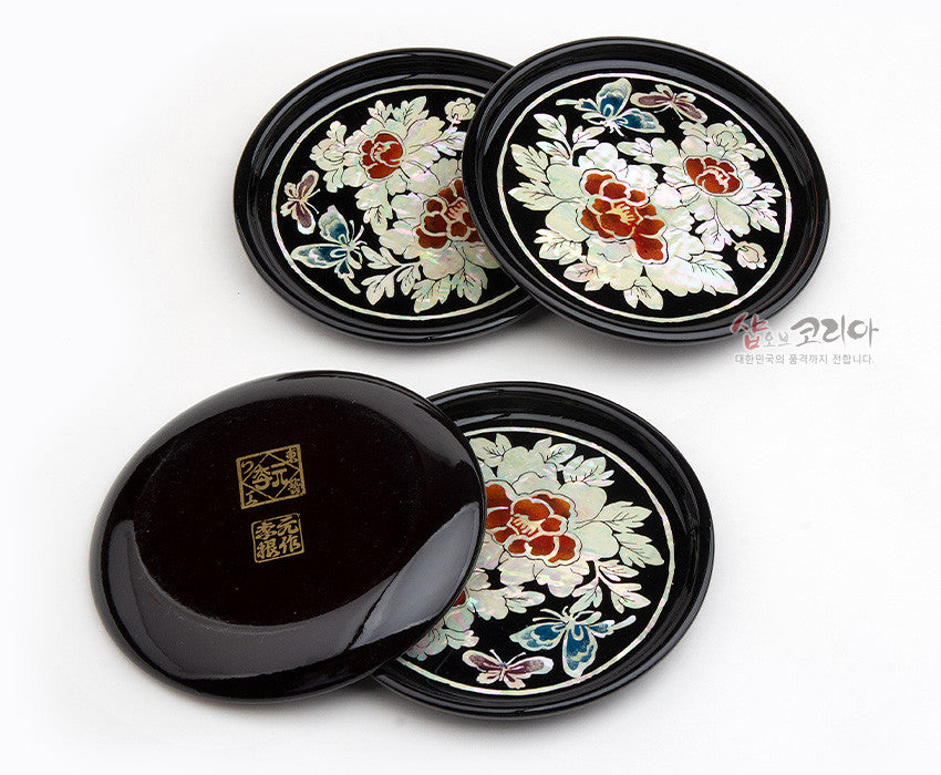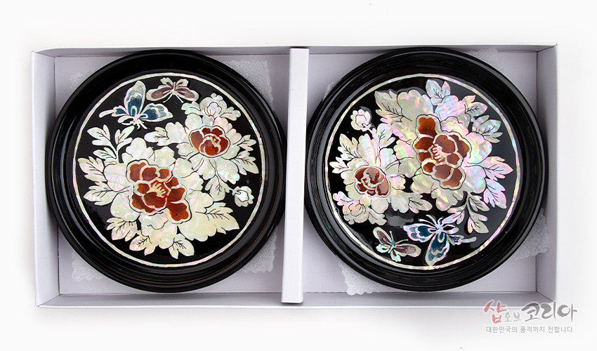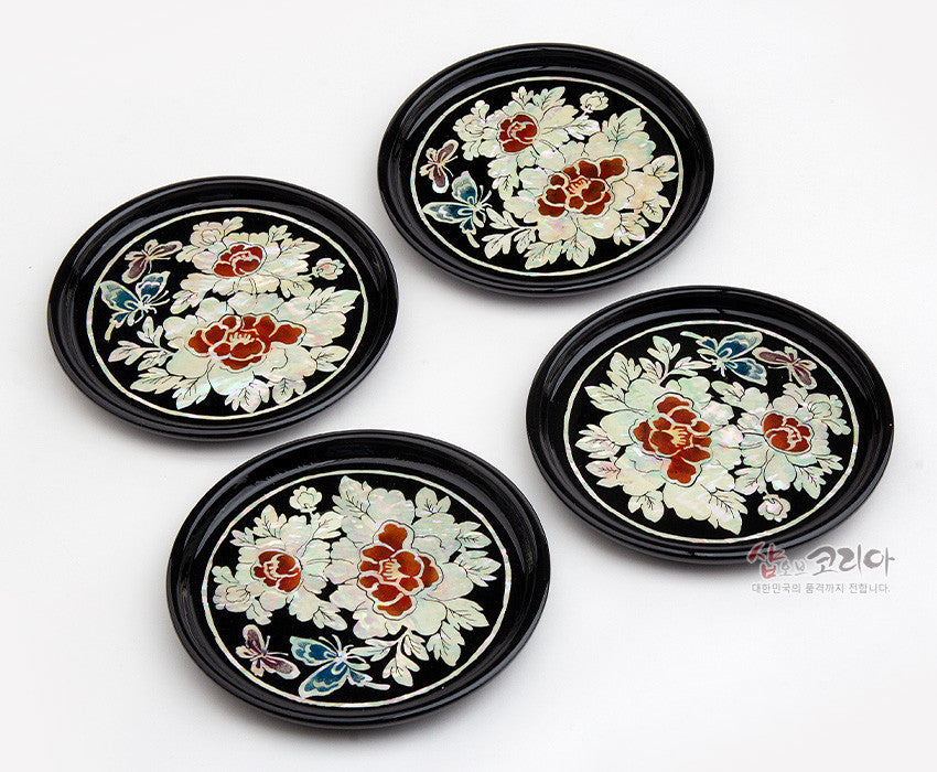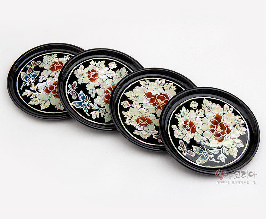 * Mother-of-pearl lacquerware coasters set of 4 – Mokdan Butterfly – Made In Korea
