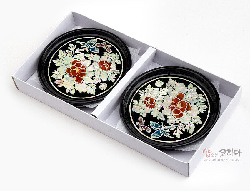 * Mother-of-pearl lacquerware coasters set of 4 – Mokdan Butterfly – Made In Korea