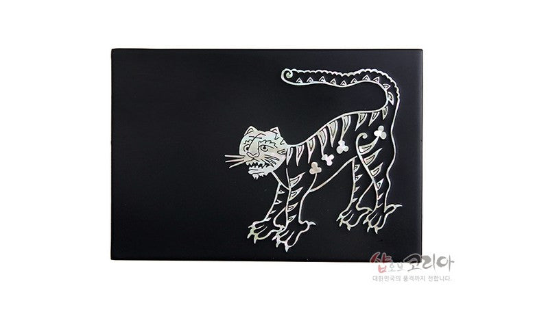 Nestled within the heart of traditional craftsmanship, this business card holder transforms functionality into a narrative of elegance. Crafted from bone and meticulously adorned with mother-of-pearl patterns, it embodies a dance between heritage and modern minimalism. The depiction of the anthropomorphic tiger springs forth from Korean folk tales—a representation not just an ornament but also symbolic bravery woven into everyday life. The matte finish on wood provides warmth that draws you in while remaining unassuming against other décor items; such balance fosters creativity during networking moments—no wonder I felt more confident when offering my card at recent meetings! This unique piece narrates my values without words.