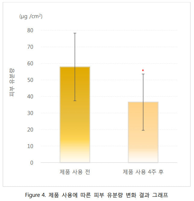 Measurement of the number of lesions, oil content, and sebum index using the entire face for 4 weeks