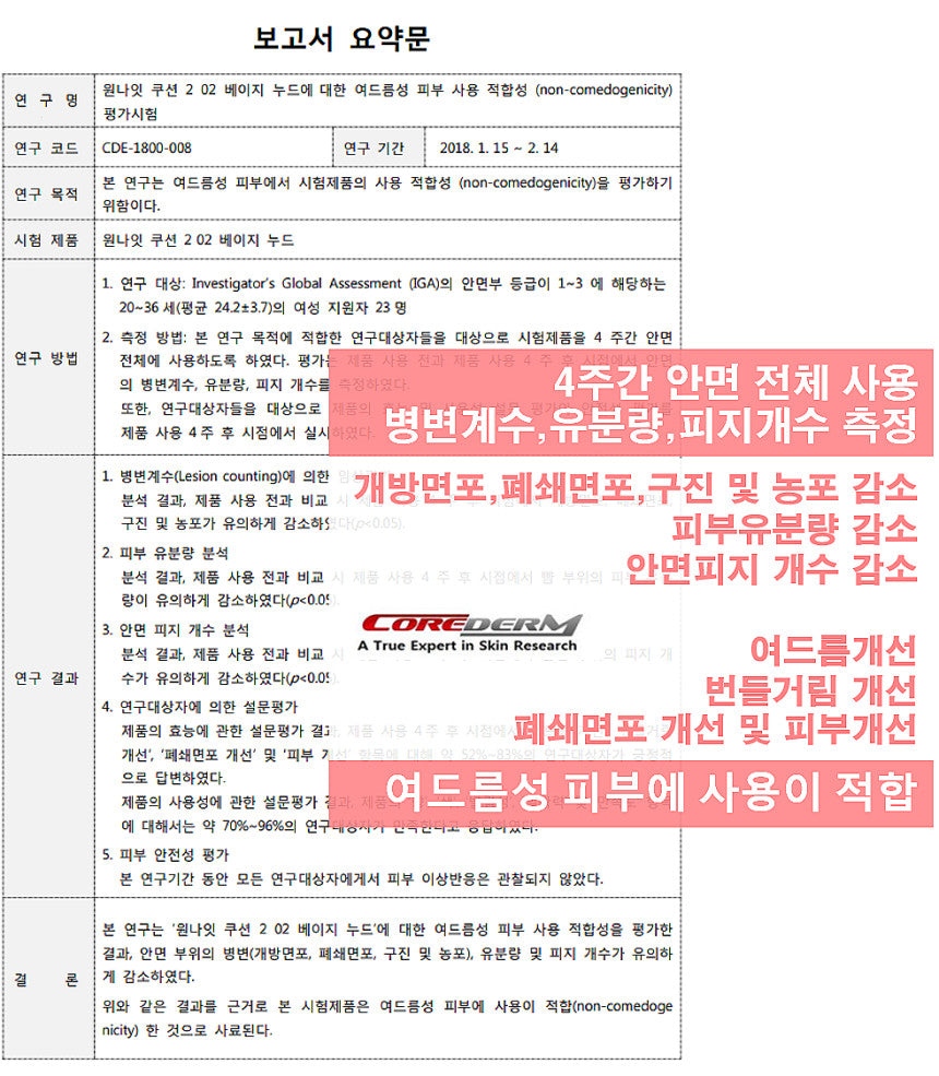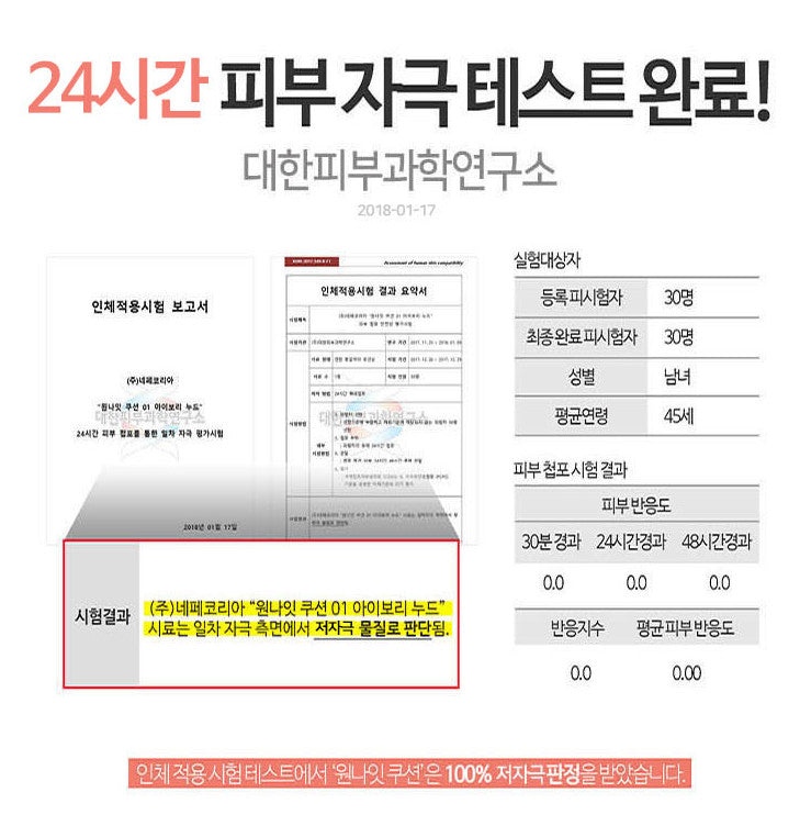 * In the human body application test, WONIGHT CUSHION was judged to be 100% hypoallergenic.