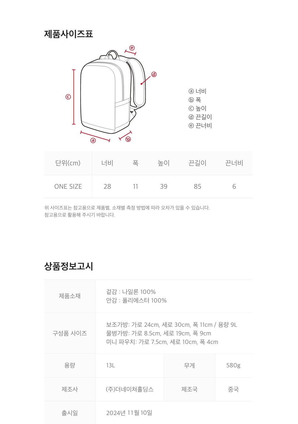 - Backpack: 13L capacity and lightweight build for easy portability.