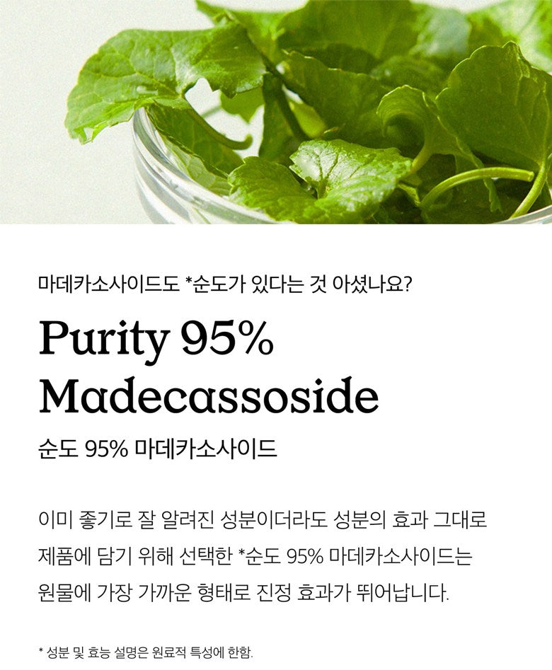 - Pure Madecassoside: Contains 95% pure madecassoside, an ingredient well-known for its excellent soothing effect.