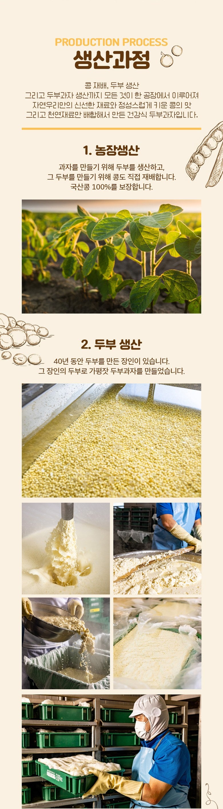 Our tofu snack stands out with its use of 100% Gapyeong pine nuts and 100% domestic soybeans, ensuring every bite is packed with the pure, rich flavors of these premium ingredients. We take pride in using only natural components, making our snack a guilt-free indulgence for those who value purity in their diet.