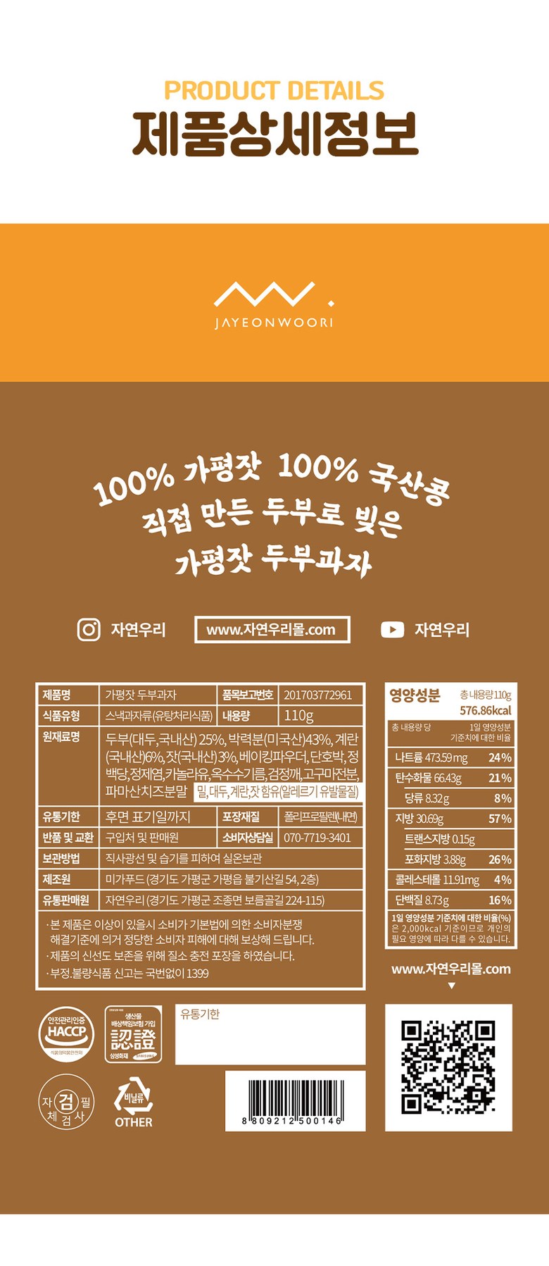 Each 110g pack of Gapyeong Pine Nut Tofu Snacks contains:
