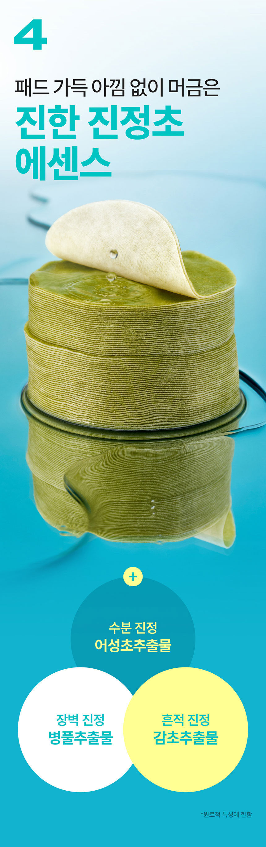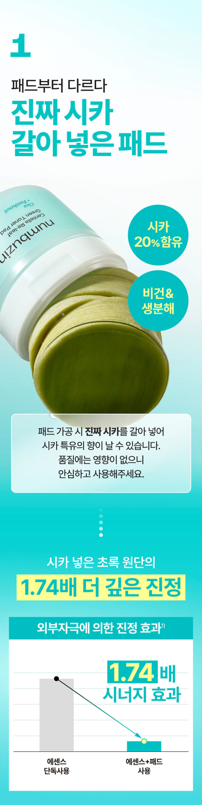 Our unique processing method grinds cica to retain its natural scent without compromising quality. The pad offers 1.75 times deeper soothing than cica-infused green fabric.