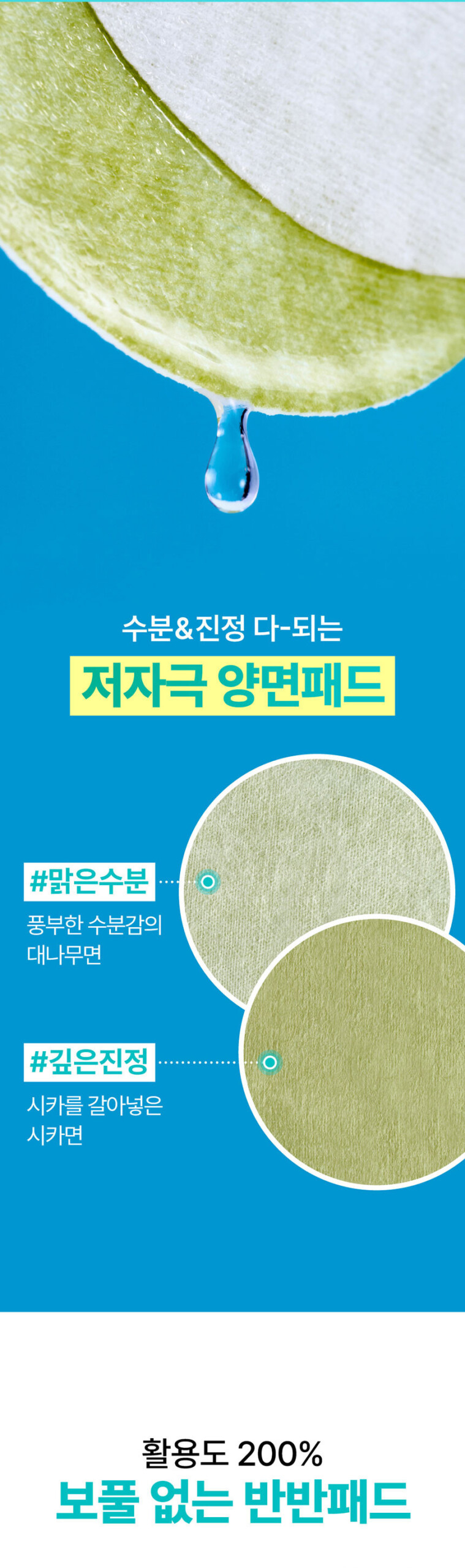Utilize the pad’s design to maximize effectiveness. Use the white bamboo cotton side to wipe along your skin’s texture and attach the green cica cotton side to areas needing extra soothing.