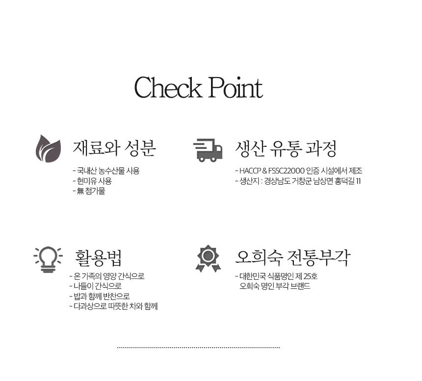 Understanding the importance of health, Oh Hee-sook Traditional Bugak undergoes a unique deoiling process. This technique significantly reduces residual oil, ensuring a longer-lasting, crispier, and healthier snack. Enjoy these snacks without the worry of oiliness.