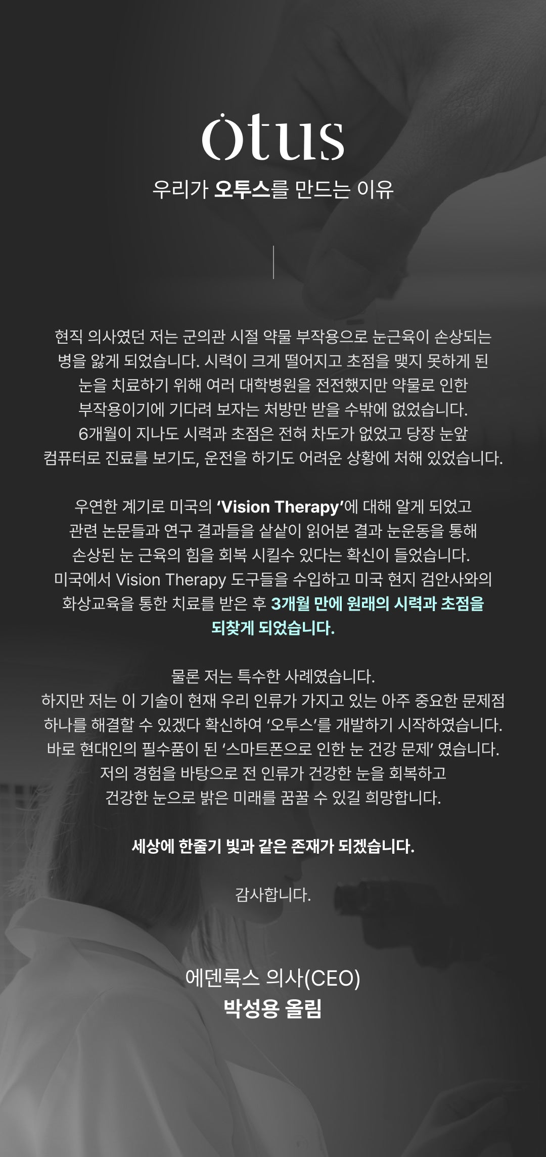 - “My eyes felt dry and strained, but after just three weeks of using Otus Plus, I noticed clearer vision. I no longer squint to read distant text!”