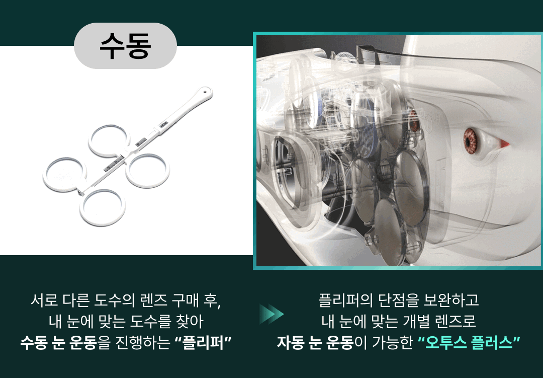 Traditional tools like the “flipper” were used in the U.S. decades ago to strengthen eye muscles. Otus Plus modernizes this concept with automated, AI-driven training tailored to your unique needs.