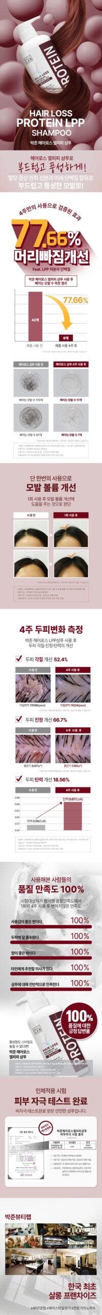 After using PARKJUN BEAUTY LAB HAIR LOSS PROTEIN LPP SHAMPOO for a month, I’ve noticed significant changes in my hair. The formula not only reduced hair fall by 77.66% but also improved the overall volume right from the first wash. My scalp feels healthier too, with noticeable dandruff reduction and less itchiness. It left my hair feeling soft and manageable without weighing it down. This shampoo truly delivers on its promises.