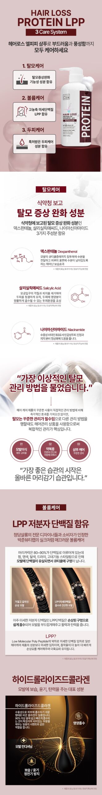- HAIR LOSS PROTEIN LPP 3 Care System: Our three-pronged approach includes Hair Loss Care, Volume Care, and Scalp Care for comprehensive hair health.