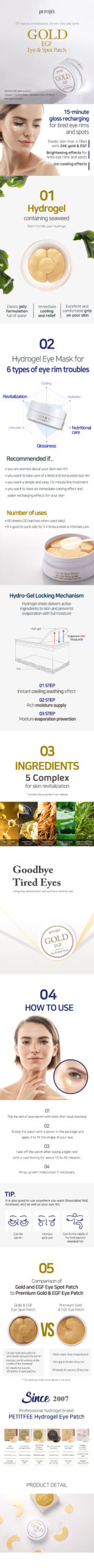 Reduces the appearance of wrinkles and dark circles These are jelly-like patches soaked with gold and EGF. They are super soft and gently adhere onto the skin. Offer your parched skin an intensely hydrating infusion of moisture plus vital nutrients and experience the dramatic firming and cooling results you thought only a professional spa treatment could deliver.