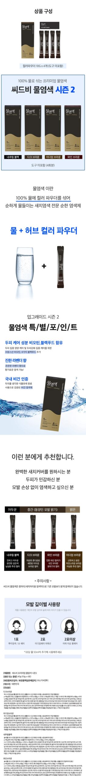 Caution: Seed-B(씨드비) water dye is intended for gray/gray hair and will not dye hair brighter than its existing shade.