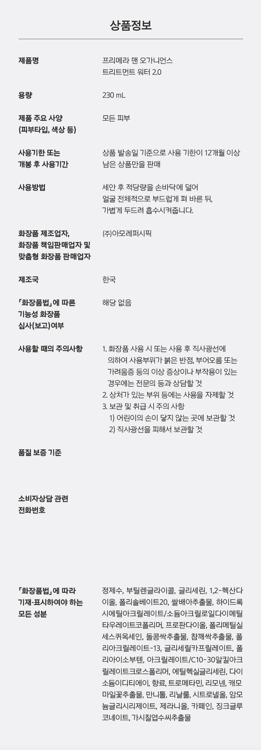 Primera Men Organience Treatment Water 230ml + Emulsion 160ml
