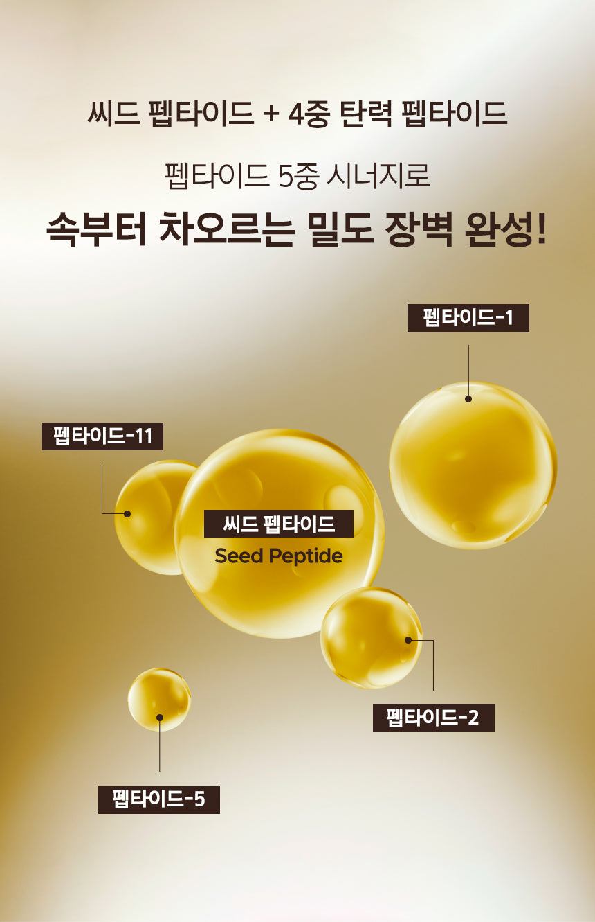 - 4-Layered Elasticity Peptide: Works in tandem with seed peptide for a robust and firm skin barrier.