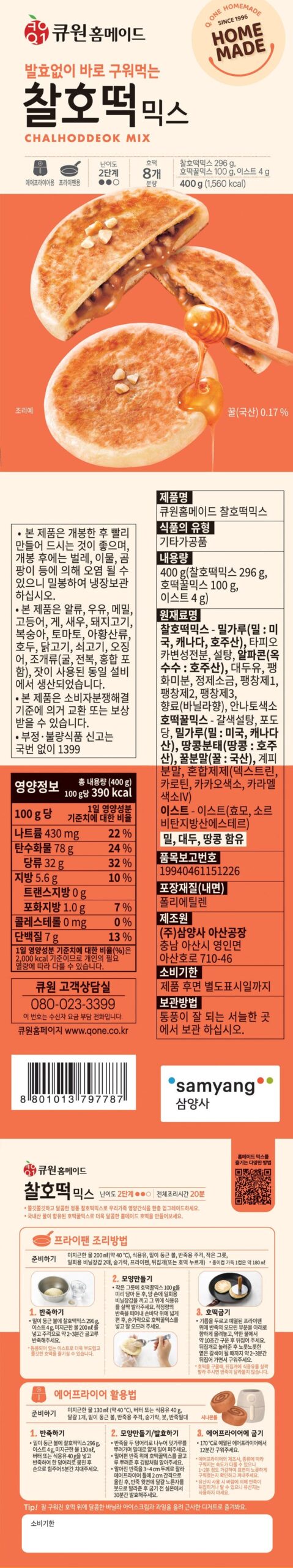 - Capacity: 400g (Comprising 296g of Glutinous Rice Cake Mix, 100g of Hotteok Honey Mix, and 4g of Yeast)