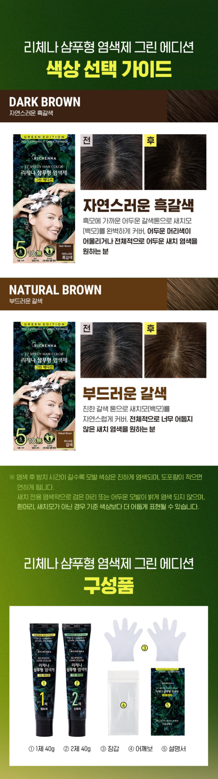 Okay, listen up! I decided to give RICHENNA’s new Green Edition shampoo hair dye a whirl because I’ve been wrestling with some stubborn grays. First off, the smell? Absolutely divine! It reminded me of sipping green tea while strolling through Kyoto in spring. No joke—the eucalyptus mixed with that gardenia hit just right and made my whole bathroom feel like a zen spa vibe 🌿✨ On top of it all, there’s something about these Jeju herbs—it totally soothed my scalp as if they knew I’d dyed more than one too many times before 😂 My color came out rich without any flatness; think summer greens rather than those tired ‘grey lurking under bleh brown’. Totally digging this shift from usual harsh chemical smells—my strands shine brighter now!