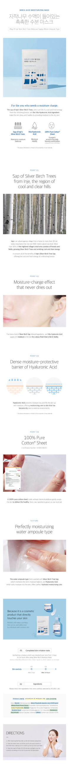 - A moisturizing sheet mask that hydrates the dry skin with the refreshing moisture of Birch sap and Hyaluronic Acid.