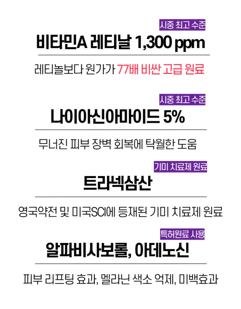 * **Note:** High-quality raw material that is 77 times more expensive than retinol