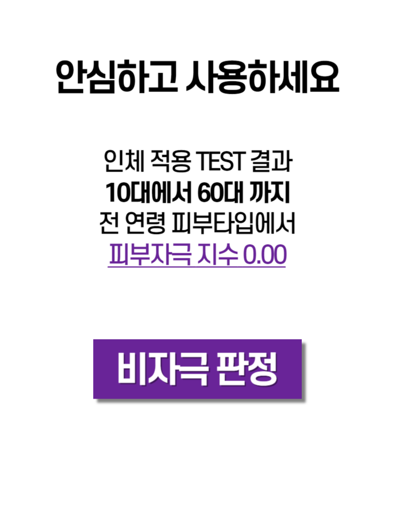 Human application tests for skin types from teens to 60s showed a skin irritation index of 0.00.